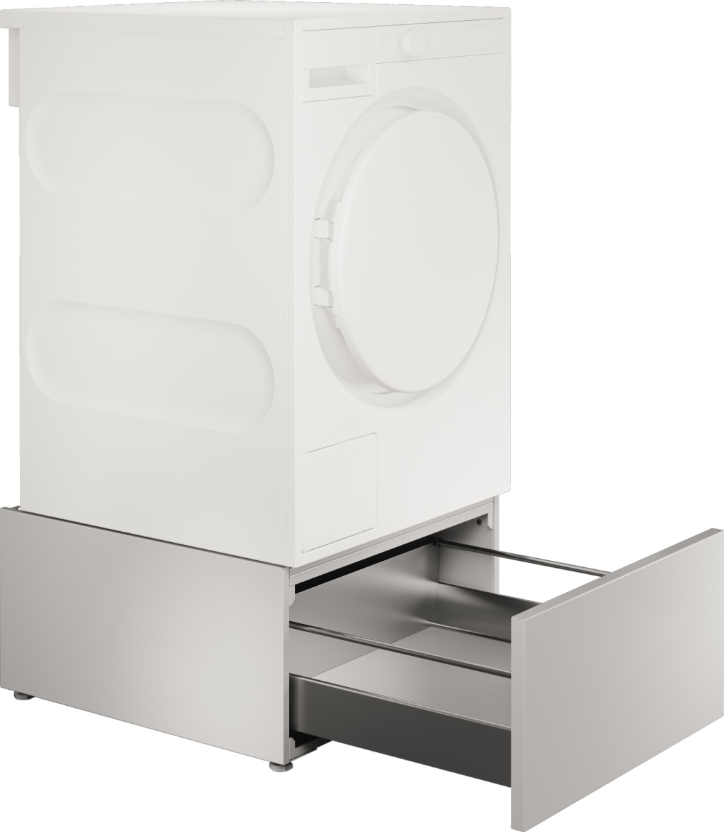 Установите его под стиральную машину, и вам будет удобнее загружать и выгружать белье.