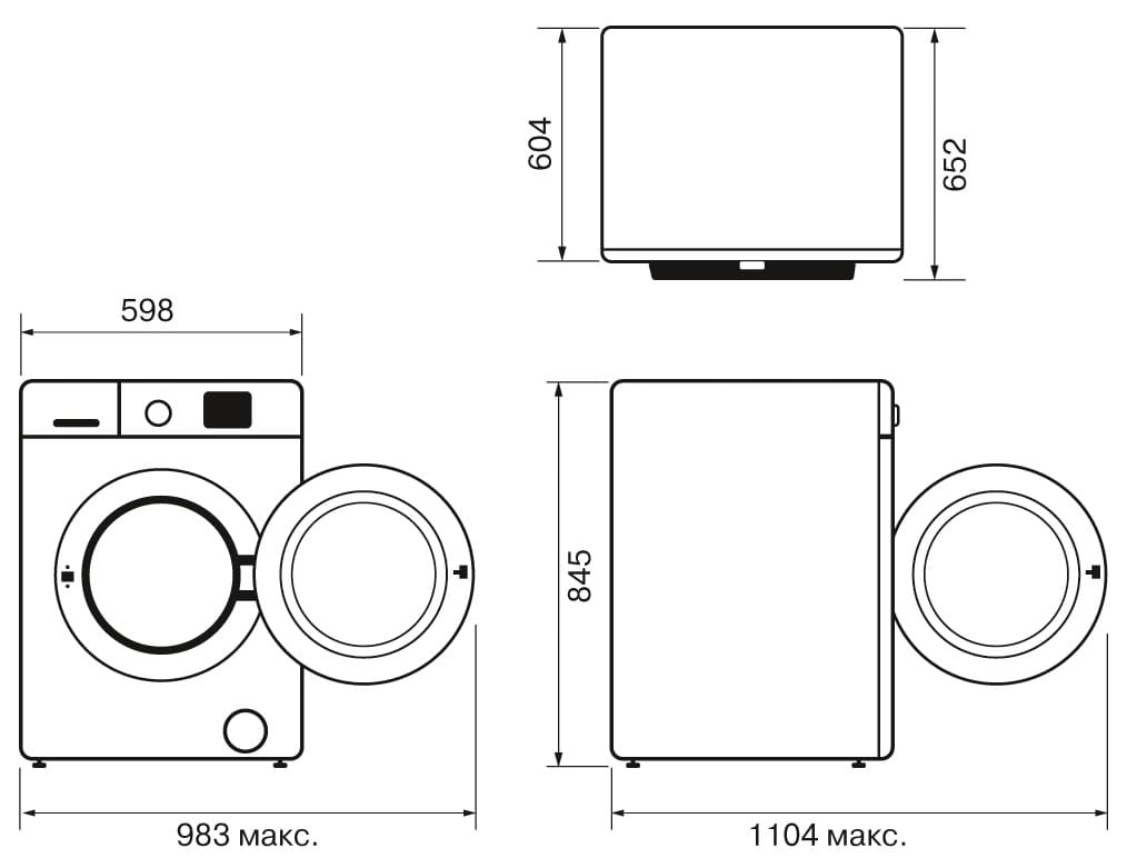 - Размеры прибора (ШхВхГ): 598х845х604 мм.