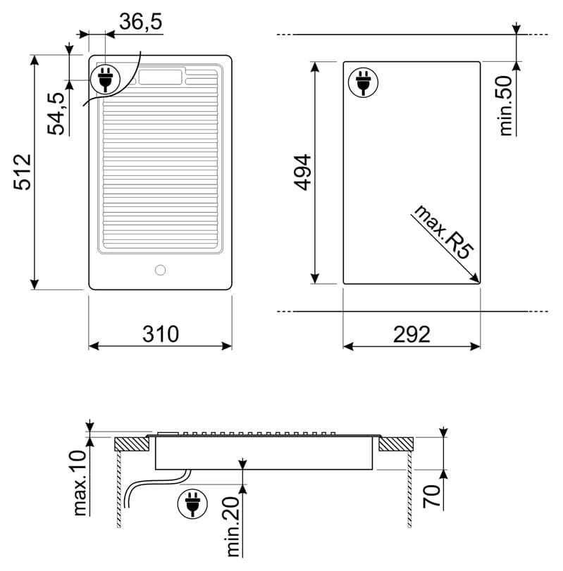 - Размеры выреза для монтажа (ШхГ): 292х494 мм.