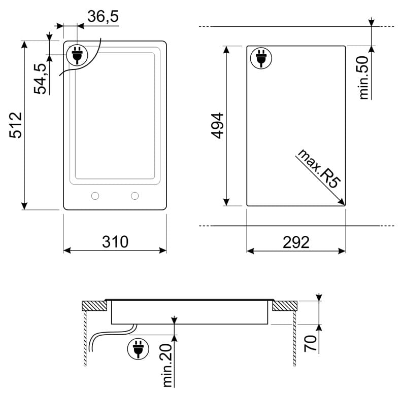 - Размеры выреза для монтажа (ШхГ): 292х494 мм.