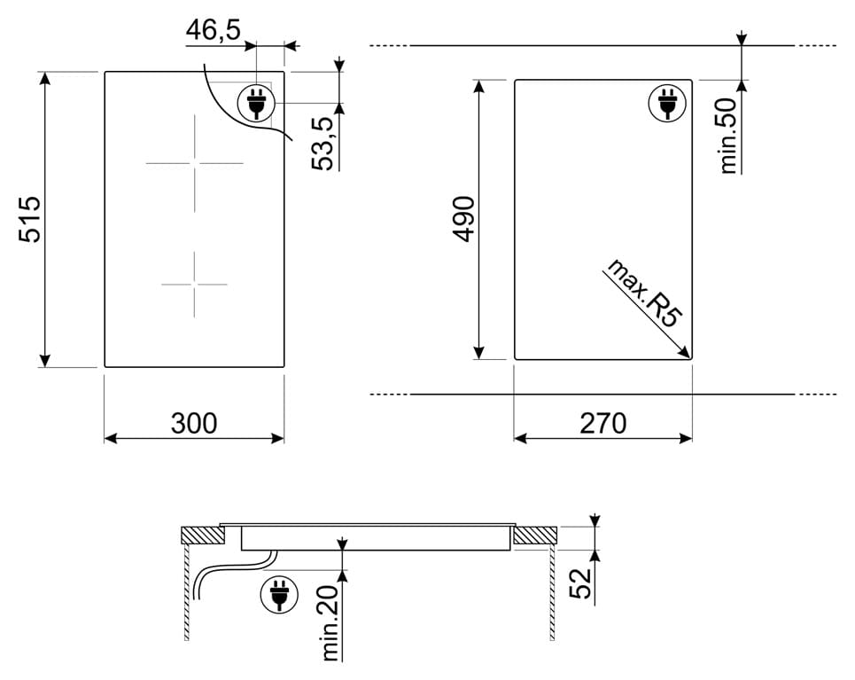 - Размеры выреза для монтажа (ШхГ): 270х490 мм.