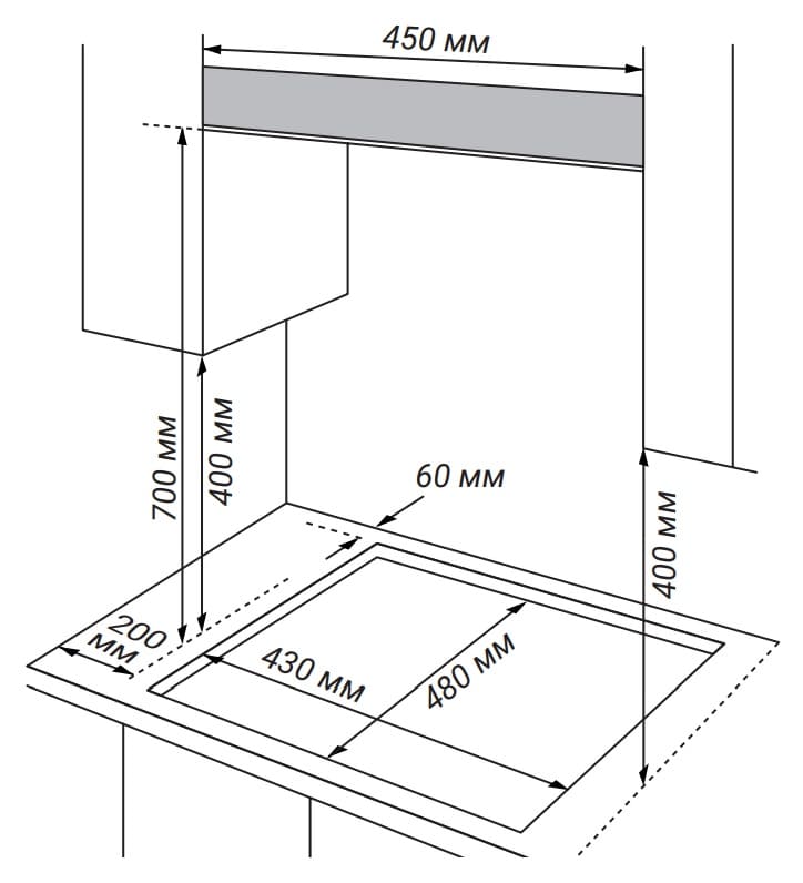 • Размеры для встраивания (ШхГ): 430х480 мм.