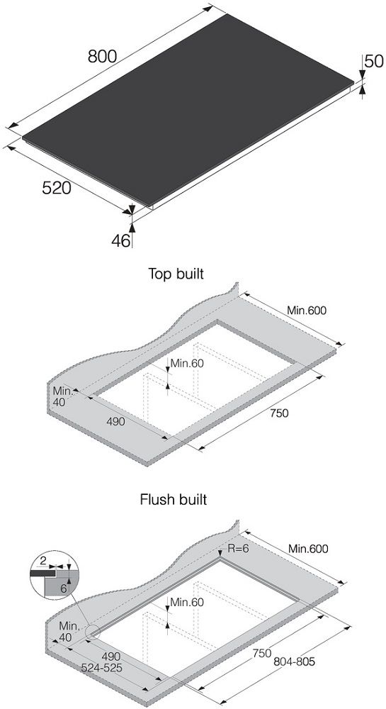 - Размеры ниши для встраивания (ШхВхГ): 750х70х490 мм.