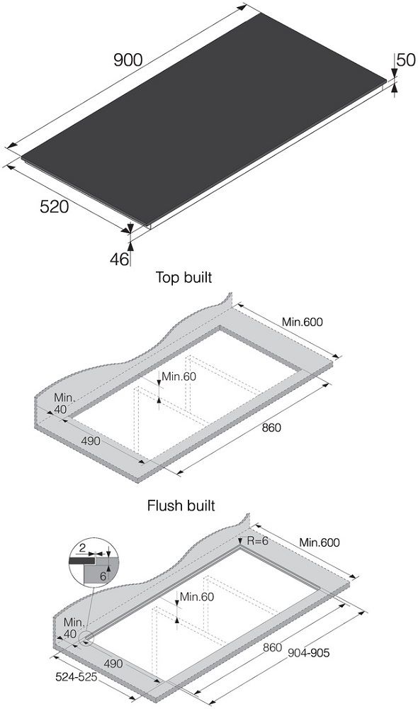 - Размеры ниши для встраивания (ШхВхГ): 860х70х490 мм.