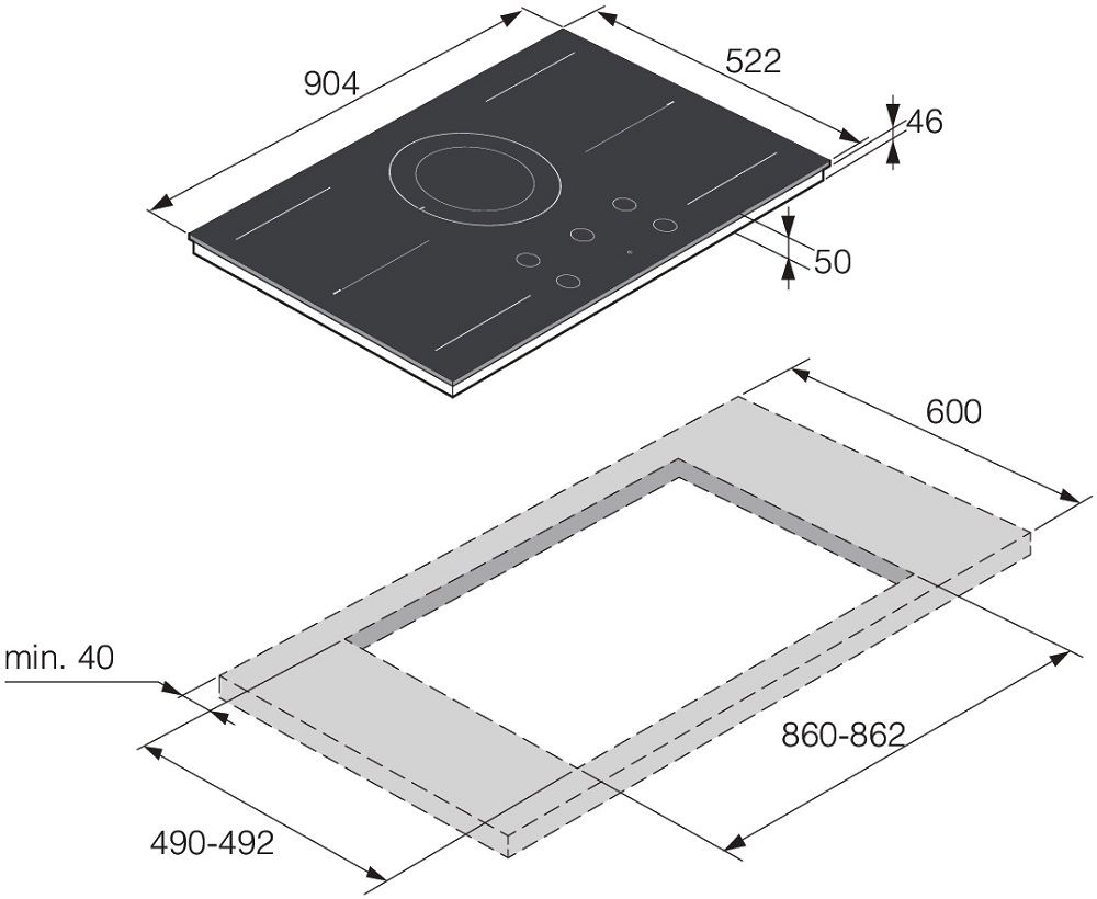 - Размеры прибора (ШхВхГ): 904х47х522 мм.
