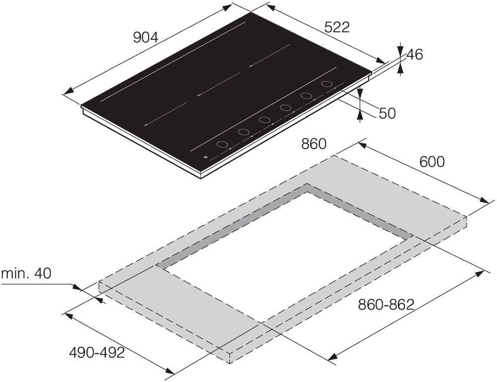 - Размеры прибора (ШхВхГ): 904х47х522 мм.