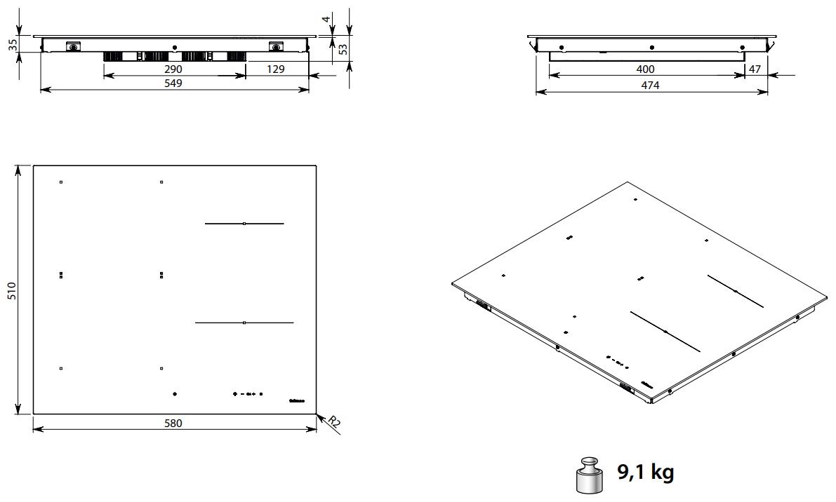 - Отделка: чёрная стеклокерамика.