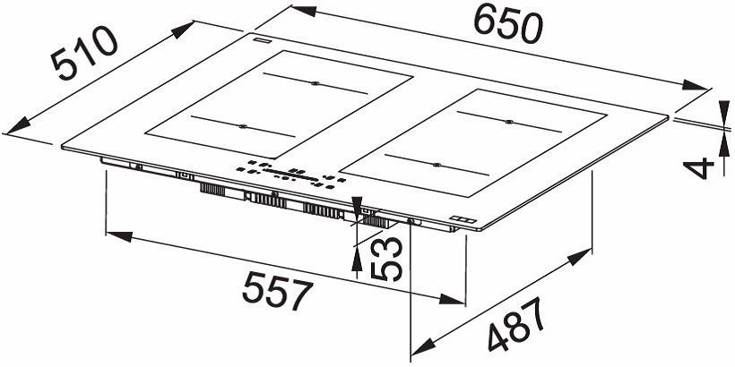 - Размеры выреза для монтажа сверху (ШхГ): 560х492 мм.