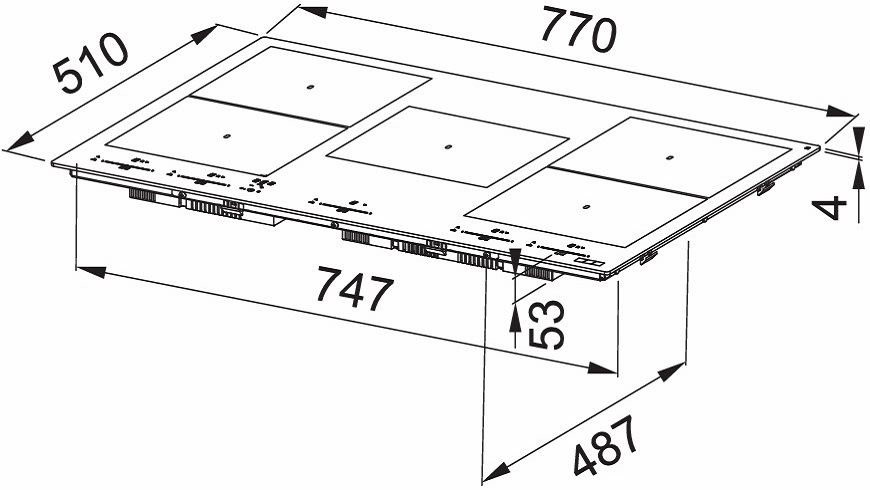 - Размеры выреза для монтажа сверху (ШхГ): 750х492 мм.