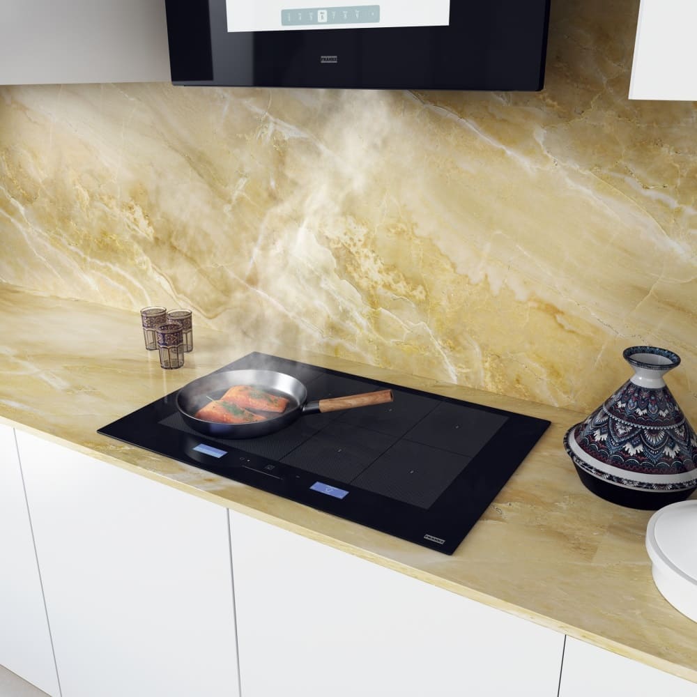 - Размеры выреза для монтажа вровень со столешницей (ШхГ): 773x513 мм, R6.5 мм.