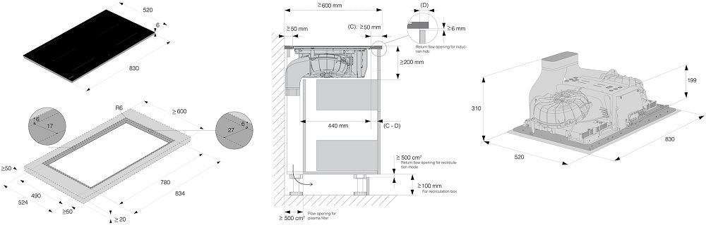 • Размеры ниши для встраивания (ШхВхГ): 780х199х490 мм.