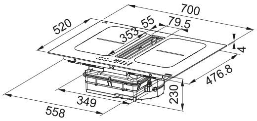 - Размеры выреза при монтаже сверху (ШхГ): 560х490 мм.