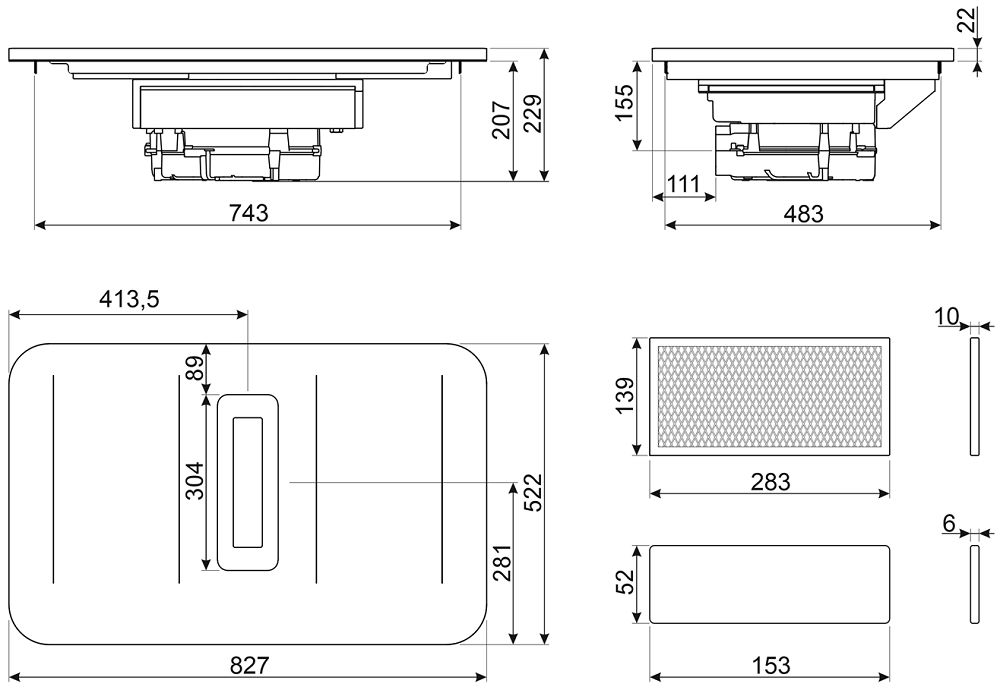 - Задняя правая зона: 21x19 см - 2100 Вт (Booster 3000 Вт).