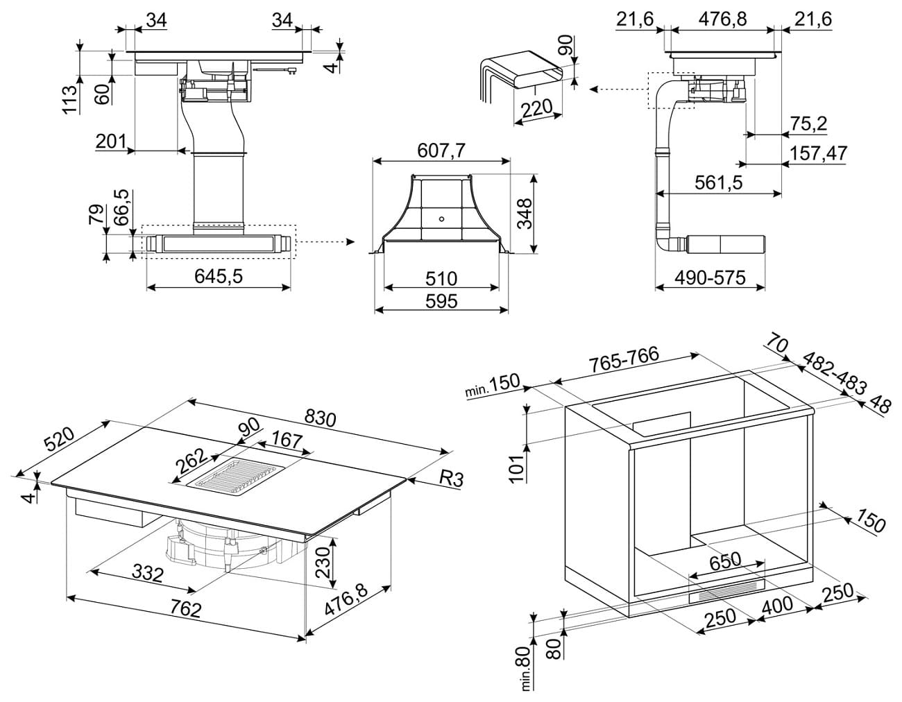 - Размеры выреза для монтажа (ШхГ): 765-766х482-483 мм.