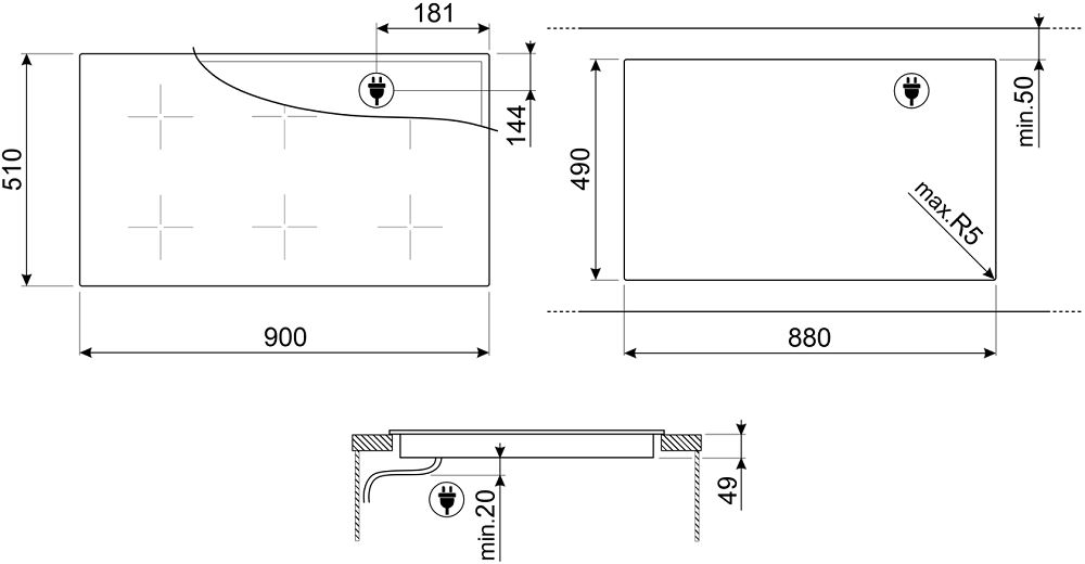 - Размеры выреза для монтажа (ШхГ): 860х490 мм.