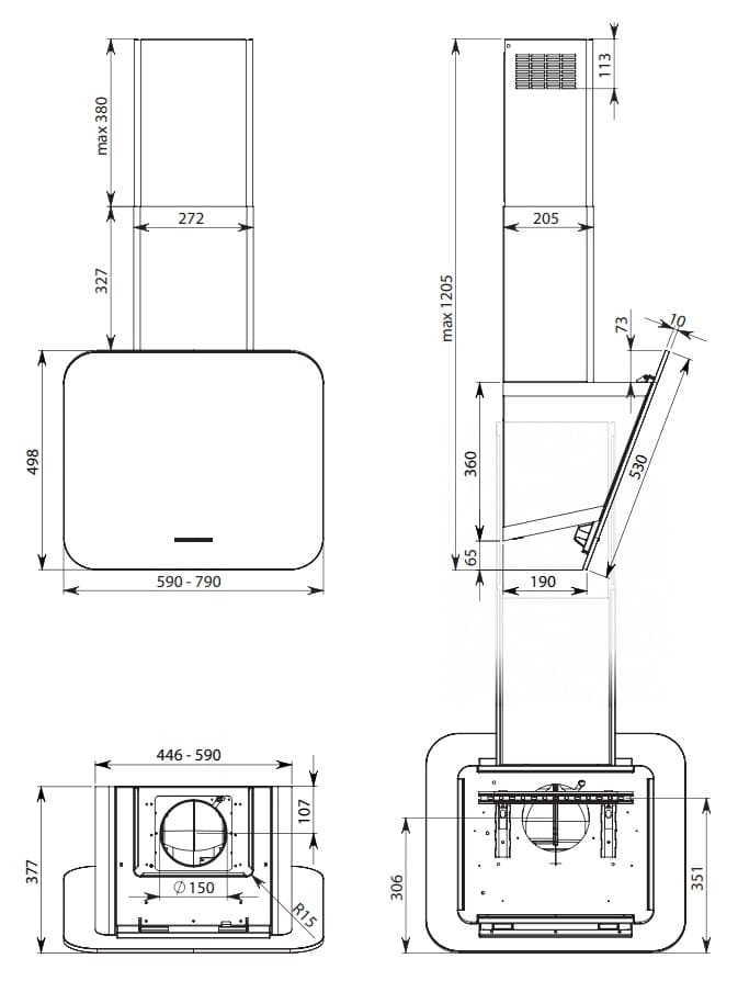 - Декоративный дымоход в комплекте: опция, приобретается отдельно в случае необходимости.