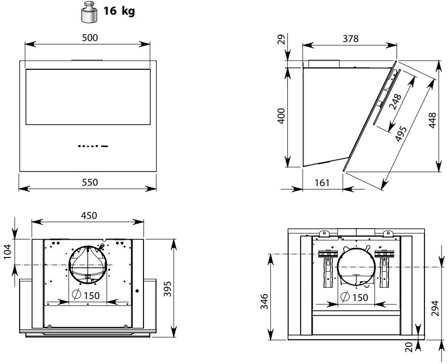 • Размеры прибора (ШхВхГ): 550х448х378 мм.
