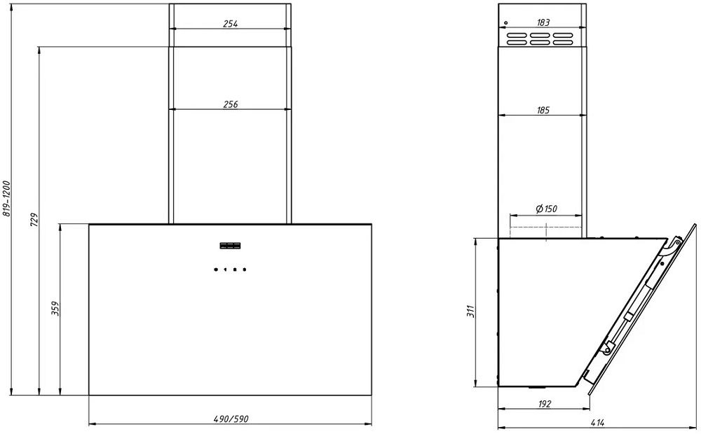 • Диаметр воздуховода: 150 мм.