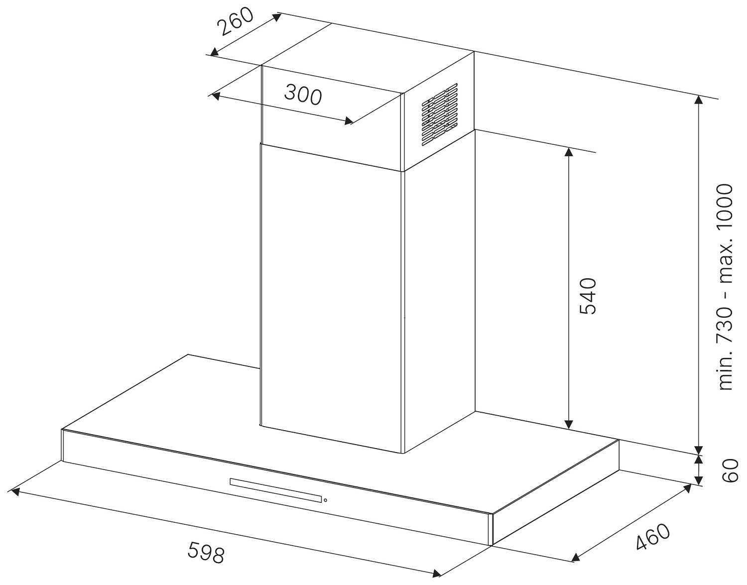 - Размеры прибора (ШхВхГ): 600х730-1000х460 мм.