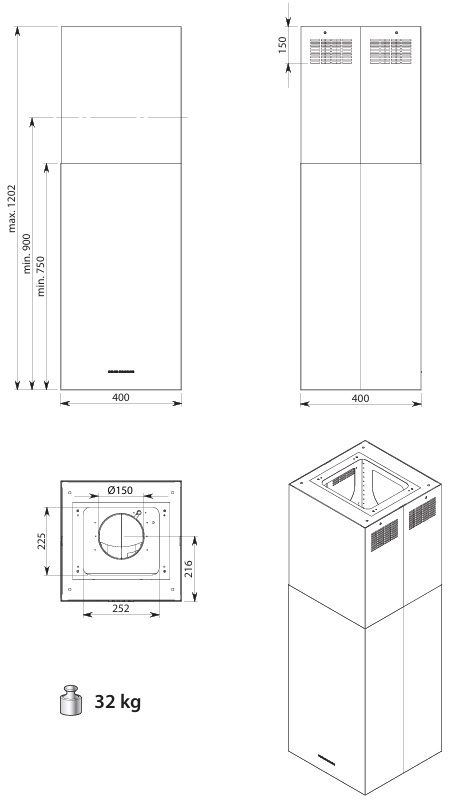 • Размеры прибора (ШхВхГ): 400х900-1202х400 мм.