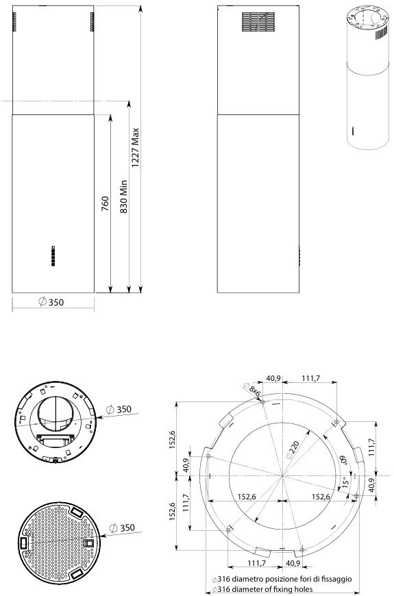 • Размеры прибора (ШхВхГ): 350х820-1225х350 мм.