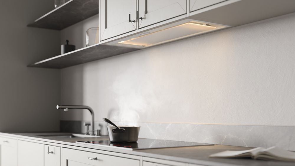 • Периметральное всасывание: воздух втягивается по краям вытяжки, что обеспечивает более эффективное улавливание испарений и значительно снижает уровень шума.