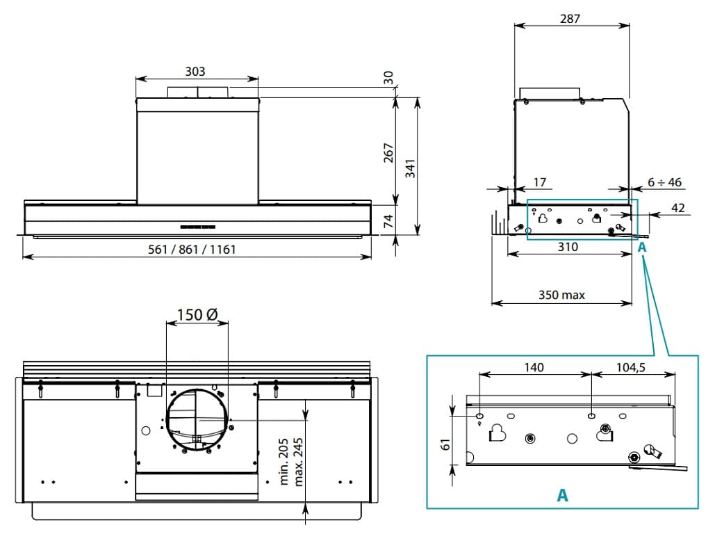 - Размеры прибора (ШхВхГ): 561х340-700х350 мм.
