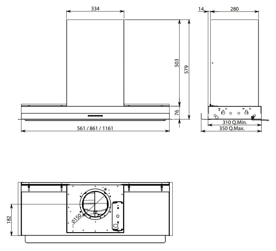 - Размеры прибора (ШхВхГ): 861х579х310-350 мм.