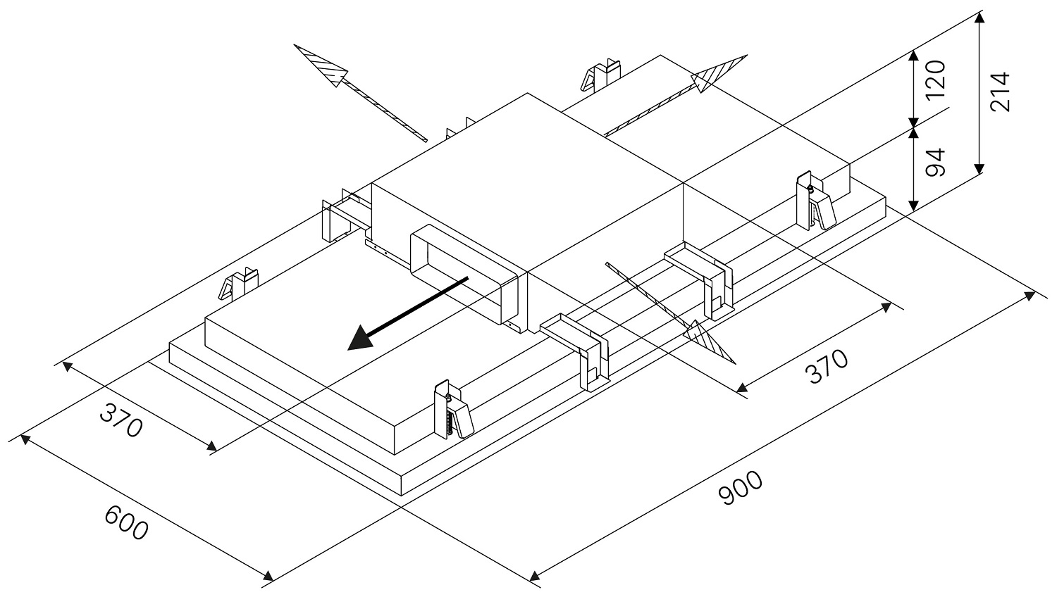 - Размеры прибора (ШхВхГ): 900х216х600 мм.
