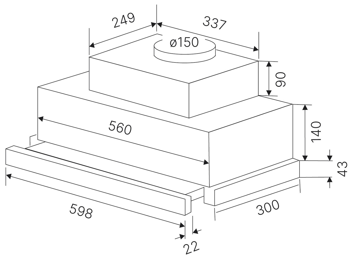 - Размеры прибора (ШхВхГ): 600х310х300-490 мм.