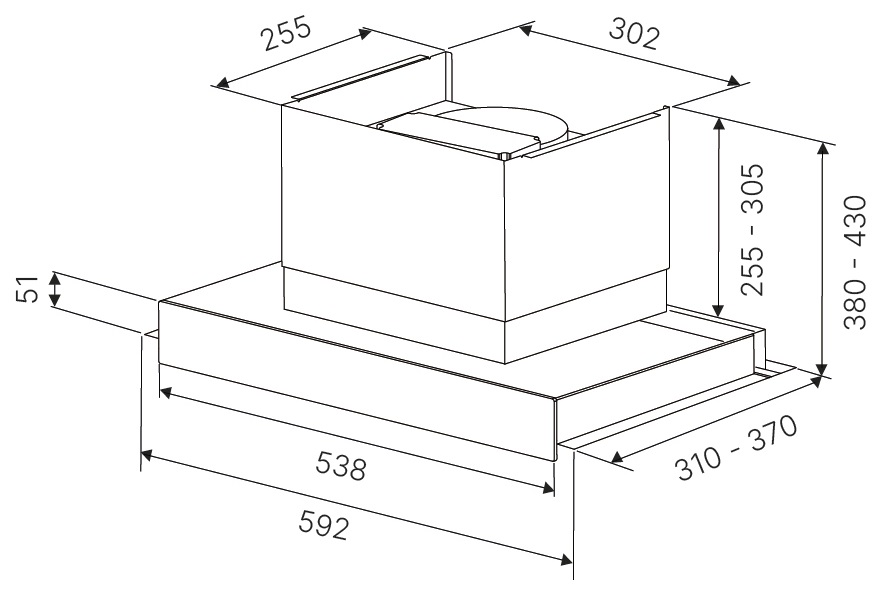 - Размеры прибора (ШхВхГ): 592х380-430х310-370 мм.