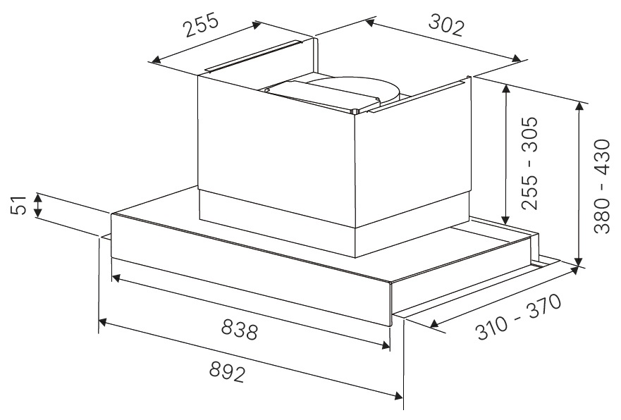 - Размеры прибора (ШхВхГ): 892х380-430х310-370 мм.